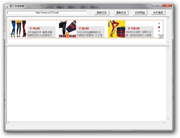 使用方法:輸入完整的豆丁文檔地址后,點(diǎn)擊抓取文字,抓取到的文字會(huì)顯示在下面的文本框里,點(diǎn)擊復(fù)制文字可以將抓取文字復(fù)制到剪貼板里。