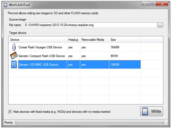 把鏡像寫(xiě)入閃存內(nèi)存卡(WinFLASHTool) 1.0 綠色免費(fèi)版 WinFLASHTool是一個(gè)使用磁盤(pán)映像創(chuàng)建內(nèi)存卡的軟件。WinFLASHTool是一個(gè)開(kāi)源工具,它允許原始磁盤(pán)映像寫(xiě)入到閃存卡。該工具支持多分區(qū)的鏡像和單分區(qū)卡,并允許預(yù)覽、擦除分區(qū),然后覆蓋卡。從原始磁盤(pán)映像寫(xiě)入閃存存儲(chǔ)設(shè)備。WinFLASHTool 允許你寫(xiě)你。單個(gè)和多分區(qū)卡上的 IMG 文件 / 圖像。