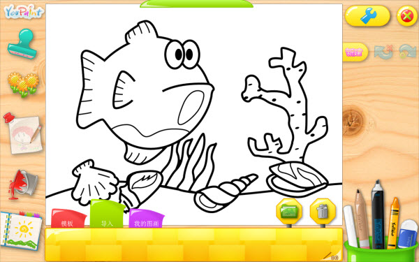 YouPaint內(nèi)建了多達(dá)10種的描繪范本,只要從中選取喜愛的樣式,就能夠馬上進(jìn)行線條描繪,畫出如:動物丶建筑物丶交通工具...等圖像。您也能夠自行匯入自己的圖像,用來當(dāng)作描繪的范本,讓小朋友在繪圖時的范本參考多更多選擇。