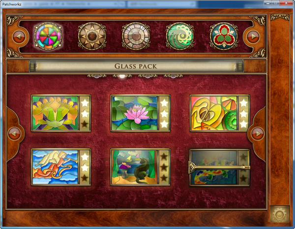 創(chuàng)意:游戲根據(jù)拼圖素材的不同材質(zhì),玻璃、木頭、石板、紙質(zhì)、紡織品、金屬,分為6大關(guān)卡,每個關(guān)卡中有24幅圖。完成一個關(guān)卡中的24幅圖畫,即可解鎖對應(yīng)關(guān)卡的挑戰(zhàn)模式,即在規(guī)定的時間內(nèi)完成每幅拼圖。