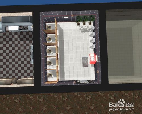 把餐廳房間做出來后就規(guī)劃出廚房,廚房要夠放下廚具,每種至少放兩個(gè),如圖。記得放上燈哦。