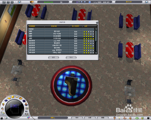 最后,點(diǎn)餐廳空白處可以呼出餐廳菜單,這里可以設(shè)置菜式和領(lǐng)班、服務(wù)員,餐廳收入、需求等等情報(bào),記得要??纯础?br />