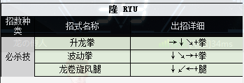 作為2號主角和隆的出招方式類似,并且也深受玩家們的喜愛;詳情參考下圖