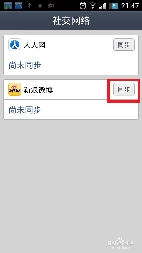 在信息頁面,點擊新浪微博后面的“同步”,如下圖。