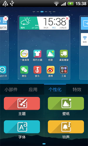 圖標(biāo)壁紙隨意換,鈴聲字體隨心改,深度定制屬于你的完美桌面,個(gè)性創(chuàng)意毫無拘束,手機(jī)屏幕就是你的繪畫板。