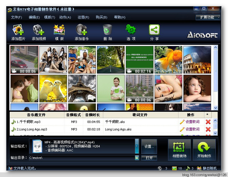 六、艾奇視頻電子相冊(cè)制作軟件操作只需3步,新手菜鳥(niǎo)也會(huì)用1- 添加圖片;2-添加音樂(lè);3-開(kāi)始制作。操作流程就是這樣的簡(jiǎn)單,引導(dǎo)式界面各種功能設(shè)置清晰明白,一看就會(huì)用。