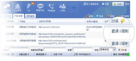 實時監(jiān)控進入網(wǎng)站的每個訪客以及該訪客的瀏覽軌跡,并可對訪客發(fā)起對話邀請或強制對話,變被動為主動。