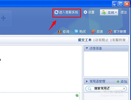 2.在客服系統(tǒng)后臺頁面,找到“常用語”,然后點擊進入設(shè)置。(如下圖)
