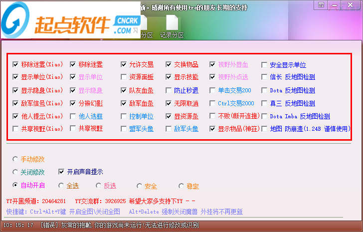 魔獸全圖工具是一款魔獸游戲地圖的作弊軟件。魔獸全圖最終版可以將地圖全部亮化,你只需要在軟件上勾選想要顯形的單位,即使是敵方的面板信息也可以一覽無遺,最終幫助你有效地贏得游戲勝利。該軟件還可以用作dota全圖工具、真三全圖工具。現(xiàn)如今,浩方、vs上開全圖的人越來越多,相當(dāng)于大家都開了圖,不開圖的反倒吃虧。這款開全圖軟件能完美過vs和浩方平臺,不僅全圖,還能偽裝名字,改名、顯隱身等等。