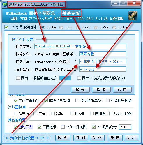 1. 魔獸爭霸1.20E完整全圖功能2. 物品欄改鍵, 支持多鍵組合