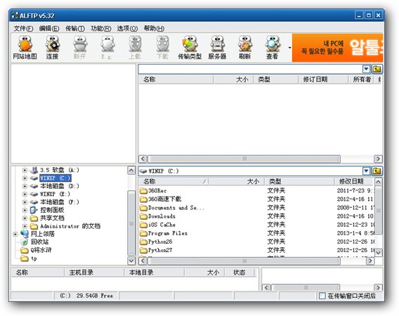 ALFTP5.32由Delphi制作,源語言是朝鮮語,完成了所有的標(biāo)準(zhǔn)資源漢化,但沒有進行非標(biāo)資源的處理。