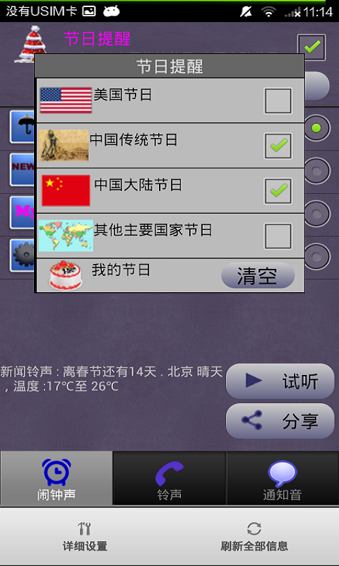 9.APK版本1.1.01開(kāi)始支持中文普通話鈴聲。(需要中文tts引擎支持,如三星tts或訊飛tts等)