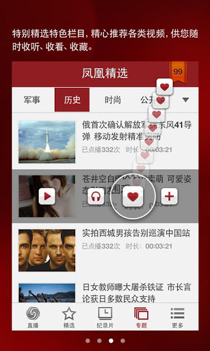 配合視頻在線直播功能,高清收看鳳凰衛(wèi)視節(jié)目直播