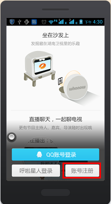 注冊(cè)使用從本站下載呼啦,然后打開(kāi)安裝好的“湖南衛(wèi)視呼啦”,如果你已有qq帳號(hào),可以直接點(diǎn)擊“qq帳號(hào)登錄”。