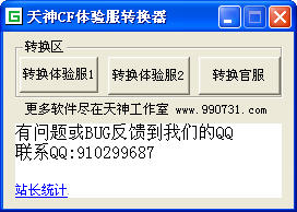 天神cf體驗服轉(zhuǎn)換器 Beta6 綠色版 天神cf體驗服轉(zhuǎn)換器是一款可以幫助游戲玩家試玩cf體驗服的工具,體驗服每星期贈送一萬CF點,大大的增加了游戲的樂趣。玩家通過下載使用該cf體驗服轉(zhuǎn)換器即可進入體驗服,加入貧民戰(zhàn)斗。
