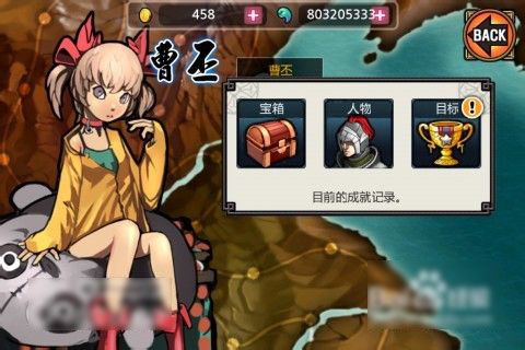 這個系統(tǒng)算是本作的收集與成就獎勵系統(tǒng),共有三個選項:寶物、人物以及成就。寶物是在每場戰(zhàn)斗之后開寶箱可以隨機獲得,也可以用100金幣進行搜索。收集滿一欄(一欄四個)即可獲得那欄最后對應的獎勵項。人物則是你在平時游戲中進行傭兵搜索所找到的人物(連著一開始的李典,一共有30個不同的魏勢力武將),算是一種變相的收集系統(tǒng)。而成就系統(tǒng),達到一定目標則有相應的獎勵,一般都是獎勵金幣,也有獎勵藍玉的。順帶吐槽一下,這里的曹丕是全游戲唯一一個小蘿莉,而且偏向哥特風。