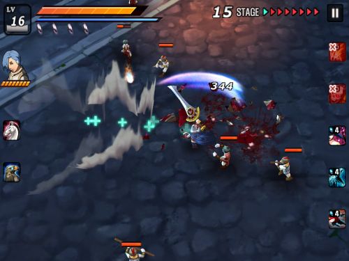 吸血:如果手指點在屏幕上向某一方向快速滑動,而且該方向有敵人(非BOSS),角色就會發(fā)動絕殺技,瞬間殺死該名敵人并回復一定的血量,會消耗大量耐力。