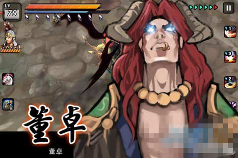 boss董卓的技能很變態(tài),全部都是范圍超級大的群攻技能!玩家只有通過放技能,上馬或者特殊攻擊進行躲避boss的技能(騎老鷹也行,小編一直沒有曲玉升級老鷹),因為只要碰上一點,差不多你就會掛掉!一般滿血情況可能還會剩一點!