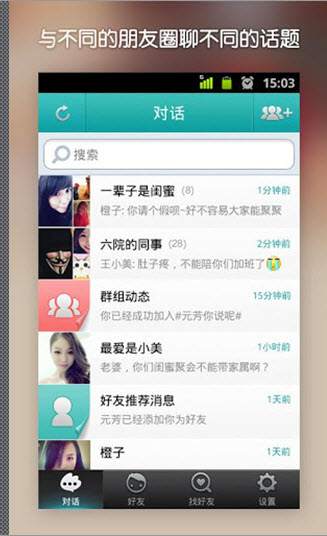 通過關(guān)鍵詞搜索群組,輕松發(fā)現(xiàn)你所喜愛的話題群;
