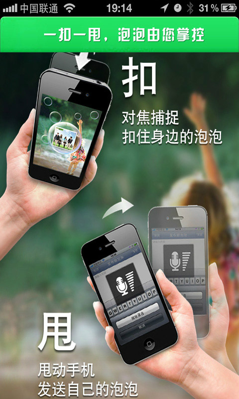 4、超趣味的動感手勢,清新的泡泡,讓您輕松翻扣手機捕捉泡泡。