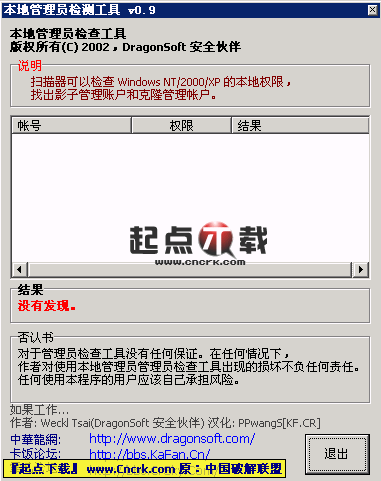 Local Administrator Checker(本地管理員檢查工具) V0.9 綠色版 本地管理員帳號(hào)檢查,將擁有 Administrator 權(quán)限的帳號(hào)列出,