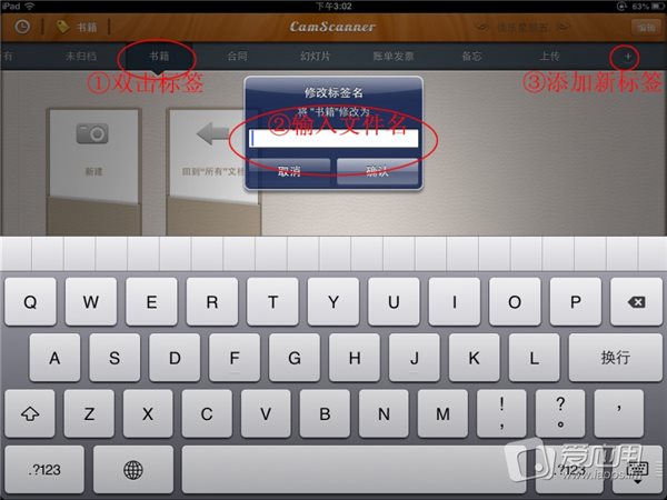 標(biāo)簽管理:打開應(yīng)用,可以看見左上方有個“標(biāo)簽”按鈕,單擊展開,可以看到它下面有“未歸檔”,“書籍”,“合同”等子分類。如果需要修改標(biāo)簽的名字可以雙擊標(biāo)簽名,彈出修改框,輸入你想要修改成的標(biāo)簽名,確認(rèn)!如果需要增加分類標(biāo)簽,可以選擇標(biāo)簽欄最右邊的“+ ”。
