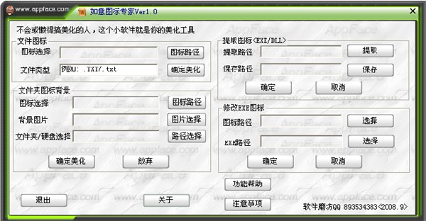 愛圖標精靈源自軟件磨坊的經(jīng)典作品,綠色圖標軟件、下載解壓即可使用;功能強悍、修改EXE圖標,提取EXE/DLL圖標并保存ICO,修改各種文件關聯(lián)圖標、修改文件夾圖標與背景,是您打造個性系統(tǒng)的利刃。