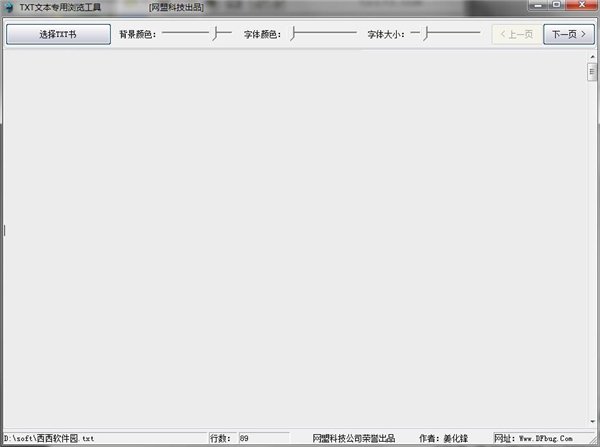 TXT文本專業(yè)瀏覽工具(txt閱讀器) V1.0 免費(fèi)版 TXT文本專業(yè)瀏覽工具是一款極其簡(jiǎn)單的txt閱讀器,它專門用來(lái)閱讀TXT文本書,它沒有其他txt閱讀器那些花哨的功能。在網(wǎng)頁(yè)上看,廣告,字體、大小,背景,格式等等太累眼睛了,所以設(shè)計(jì)這個(gè)綠色的txt閱讀器,十分適合那些喜歡看書但又不想花錢買書的朋友