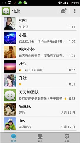 華為出品的短信增強(qiáng)精品應(yīng)用天天聊,是基于手機(jī)通訊錄的熟人移動社交工具,除了短信基本功能之外,還有語音對講、群組聊天、分組群發(fā)等增強(qiáng)功能,而且天天聊用戶互發(fā)消息完全免費(fèi)!天天聊消息:您可以通過網(wǎng)絡(luò)【0元】發(fā)送語音、圖片、視頻、幻燈片等精彩多媒體消息,還可建圈子群聊。超級短信:您只需花【0.1元】就可發(fā)送語音、圖片、視頻等多媒體消息,兼顧了省錢與效率。