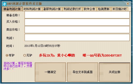dnf利潤計算器 V1.3更新信息