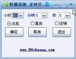 恒通濱海定時關(guān)機是一款免費綠色的定時關(guān)機軟件, 界面簡潔,一開即用,通俗易懂。只要設(shè)置好時間關(guān)機、重啟、注銷然后確定即可。