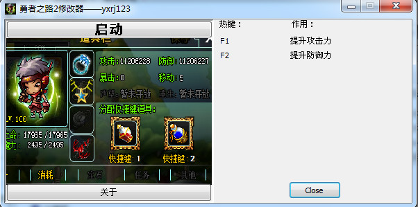勇者之路2加強版修改作弊工具,可以加強攻擊力和提升防御力 使用方法 1、運行游戲和修改器 2、更換武器和防具 3、按F1和F2 4、更換武器和防具,看看攻擊力和防御力是不是增強了