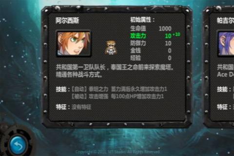 七大角色多選擇,玩家可以依照自己的喜好從7個角色中選取其一,每個角色也都附有著自己專屬的能力與技能,如極具破壞力的劍士、掌控元素之力的法師,以及神出鬼沒的怪盜等等,根據(jù)角色能力的不同,闖塔的難度與方法也將需要玩家細心摸索。魔塔內(nèi)機關(guān)重重,60余種的怪物數(shù)量、20層精心設(shè)計的高難度關(guān)卡將挑戰(zhàn)你的探知欲望,12種的戰(zhàn)斗神符,30種的道具使用,玩家需要動很多腦筋,任何一個輕率的舉動都可能導致游戲的失敗。