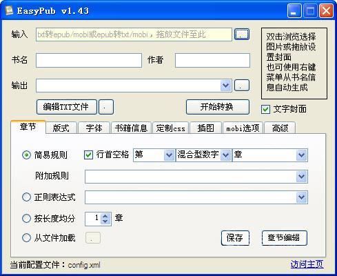 EasyPub(txt轉(zhuǎn)epub格式轉(zhuǎn)換器)是一款體積小巧的epub和mobi電紙書文件制作器。