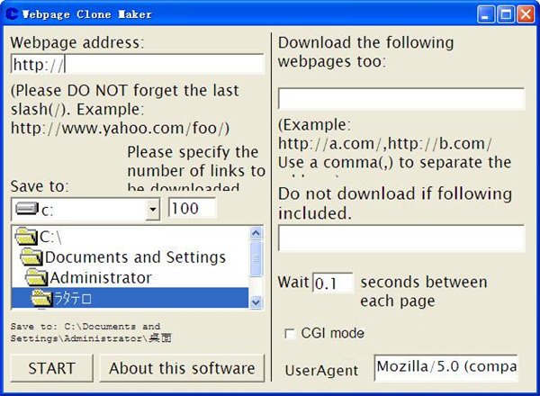 Webpage Clone Maker是一款網(wǎng)頁克隆軟件。網(wǎng)頁克隆精靈幫助你快速,方便的下載網(wǎng)頁到指定地址和您指定的網(wǎng)頁鏈接到的網(wǎng)頁上。這種特定的應(yīng)用程序,將指定的網(wǎng)頁的整個內(nèi)容復(fù)制,從而進行克隆操作。