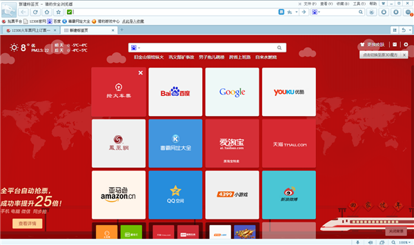 獵豹瀏覽器搶票專版還獨家實現(xiàn)了與新版12306網站的完美兼容,針對12306網站的屏蔽進行了技術升級,穩(wěn)定性大大提升。雖然12306網站新版提供了自動刷票功能,但當刷到車票時,只能在頁面中提醒用戶;而獵豹瀏覽器搶票專版的提醒則是彈窗,即使用戶轉去工作或者在線看電影,把刷票窗口最小化,一樣也能收到提醒,不耽誤下訂單。