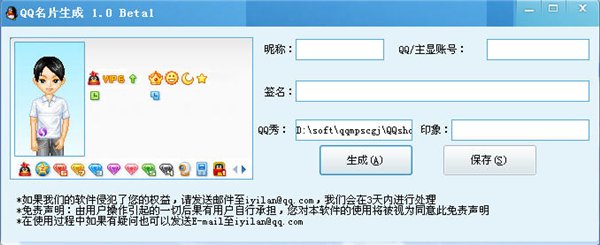詣瀾QQ名片生成器是一款專屬QQ名片制作工具,用戶可以通過他制作自己喜歡的專屬的QQ名片、包括昵稱、qq主顯帳號、簽名、qq秀等都能夠輕松幫你搞定。