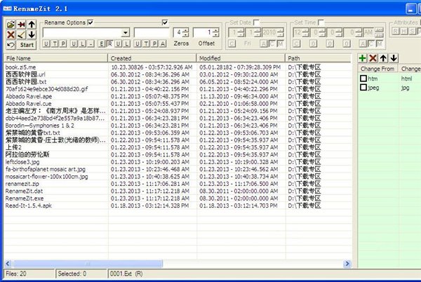 文件批量重命名(RenameZit) 4.1 綠色版 RenameZit是一個(gè)實(shí)用的文件批量重命名工具,旨在為用戶提供了一種簡(jiǎn)單的重命名多個(gè)文件。該批量重命名工具還可以更改文件擴(kuò)展名和屬性。