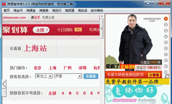 淘便宜專家系列軟件旨在為廣大淘寶買家提供一個合理優(yōu)惠最大化的購物工具,淘便宜軟件提供了眾多優(yōu)惠折扣的搜索方法,搜集了大量優(yōu)惠頻道, 集合并不斷更新最全面的淘寶特賣、打折、促銷、秒殺商品網(wǎng)購向?qū)Х?,讓廣大淘友購物更方便、更快捷、更便宜。
