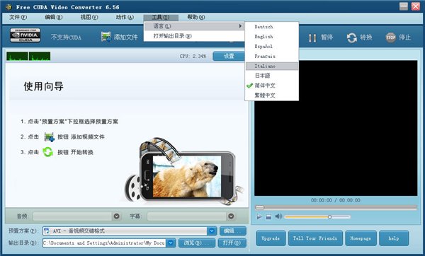 Free CUDA Video Converter 6.5.6 中文版 Free CUDA Video Converter是一款簡單易用的影視文件轉(zhuǎn)換處理工具。他可以幫助用戶來對視頻文件進(jìn)行轉(zhuǎn)檔、剪裁、加入字幕、浮水印或是一些黑白、百葉窗、油畫的效果處理,讓你的視頻得到最佳效果。