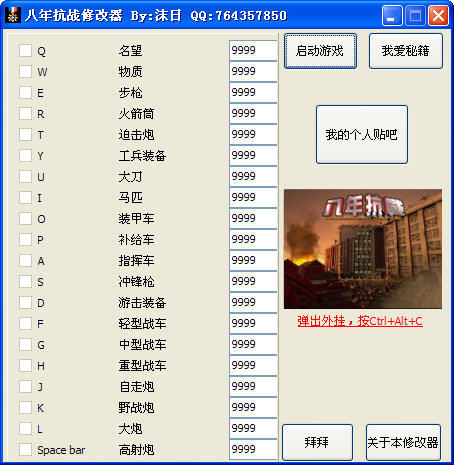 八年抗戰(zhàn)2修改器支持修改屬性: