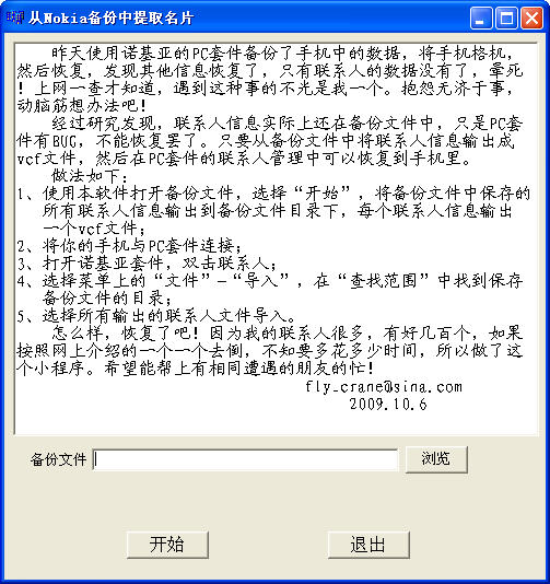 從諾基亞(Nokia)備份中提取名片工具,諾基亞的PC套件備份功能有重大缺陷,聯(lián)系人數(shù)據(jù)有可能無(wú)法恢復(fù)。本資源從備份文件中恢復(fù)聯(lián)系人數(shù)據(jù),挽救丟失的珍貴信息。