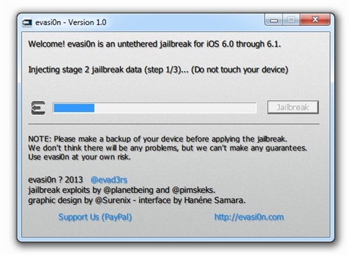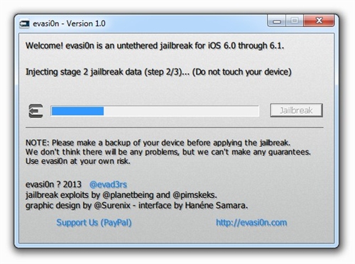 按照此前的承諾,黑客很快更新了iOS 6.x完美越獄工具到Evasi0n v1.4版本,最新版本的Evasi0n 可以支持蘋果今天更新的iOS 6.1.2進行完美越獄。如果你的iOS設(shè)備目前處于iOS 6.1.1或者更低的版本,而且你還希望升級到iOS 6.1.2并保持越獄,那么請備份你的設(shè)備,之后通過iTunes裝載6.1.2的固件(并不是選擇OTA無線升級),之后使用Evasi0n v1.4版本再次進行越獄。iOS 6完美越獄工具evasi0n今日正式放出,此次越獄工具支持iOS 6.0至6.1版本完美越獄,設(shè)備涵蓋所有支持iOS 6系統(tǒng)的iPhone、iPod touch、iPad以及iPad mini。越獄步驟簡單易操作,耗時約5分鐘。