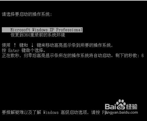 進(jìn)入到這一步的時(shí)候一定要選擇第一項(xiàng),否則的話,就會(huì)進(jìn)入到重裝系統(tǒng)之前的狀態(tài)了。