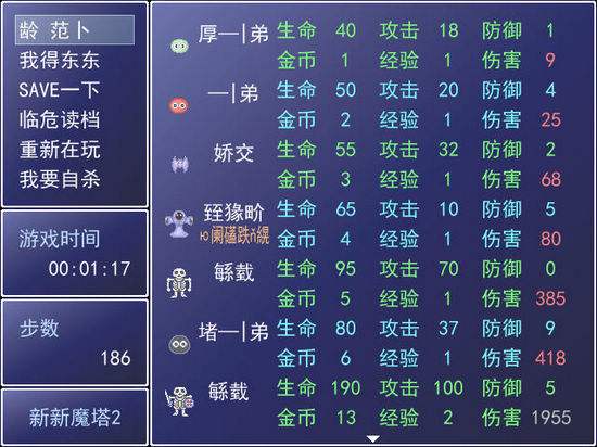新新魔塔無敵版是一類固定數(shù)值的RPG游戲。經(jīng)典魔塔有5種:Tower of the Sorcerer ;、24層魔塔(胖老鼠做)、新新魔塔(cos180做)、魔塔2006(Oksh做)、魔塔2000(ANGELA做)。雖然新新魔塔無敵版的界面很像是一般的地牢游戲,貌似隨便的打打殺殺就可以過關(guān),但事實(shí)上玩這個游戲需要動很多腦筋,任何一個輕率的選擇都可能導(dǎo)致游戲的失敗,新新魔塔無敵版游戲有屬性攻擊、防御、生命、金幣、經(jīng)驗(yàn)。對怪物的傷害次數(shù)計(jì)算公式,是敵人的生命/(自己的攻擊-敵人的防御) ;而傷害的數(shù)目計(jì)算是怪物傷害次數(shù)*(敵人的攻擊-自己的防御)。