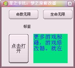 星之卡比夢(mèng)之泉修改器是一款針對(duì)同名游戲《星之卡比夢(mèng)之泉》的作弊工具,該修改器功能簡(jiǎn)單好用,提供生命無限,命數(shù)無限兩項(xiàng)屬性修改功能,助您更快通關(guān)。