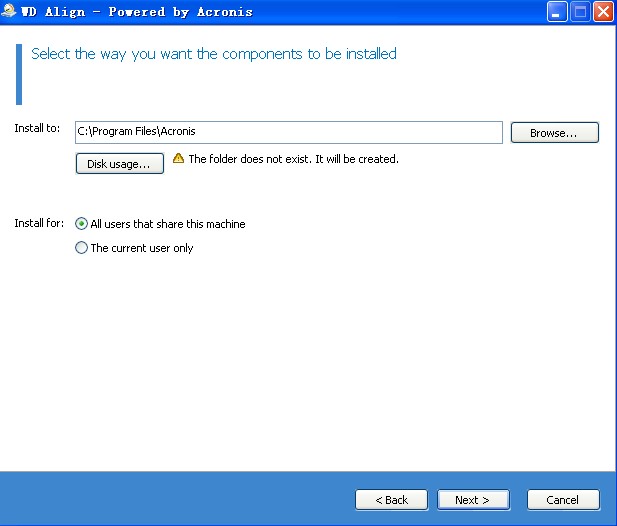 3,軟件默認(rèn)安裝路徑為:C:\\Program Files\\Acronis,點(diǎn)擊“Next”進(jìn)行下一步操作。