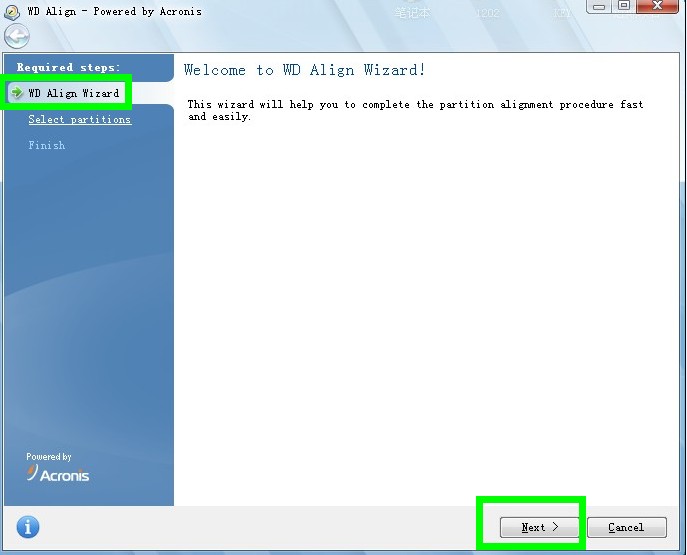 7,在彈出的“WD Align Wizard”向?qū)ы?yè)面時(shí),點(diǎn)擊“Next”進(jìn)行下一步操作。