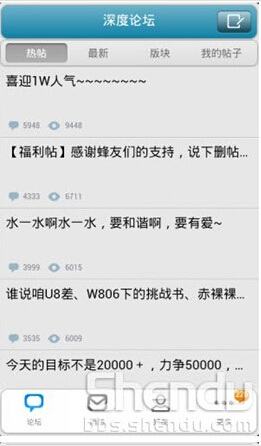 深度論壇安卓手機(jī)版是基于AppCanforDiscuzX2插件制作的一款A(yù)ndroid手機(jī)客戶端產(chǎn)品。通過本手機(jī)客戶端,用戶可以進(jìn)行瀏覽版塊、發(fā)帖、回帖、 收發(fā)站內(nèi)信等基本的社區(qū)操作,還增加了新聞推送及SNS社區(qū)互動(dòng),更能體驗(yàn)拍照上傳、定位交友、微博共享等個(gè)性化服務(wù)