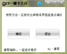 軟件介紹由謙哥制作的CF一鍵卡大白工具,趕緊下載使用吧。 使用方法: 在游戲倉庫噴漆界面直接點(diǎn)擊確定。 什么是cf一鍵卡大白? 開啟一鍵卡大白軟件之后,噴在地上,顯示為全白的,必須具有自定義噴漆才行。